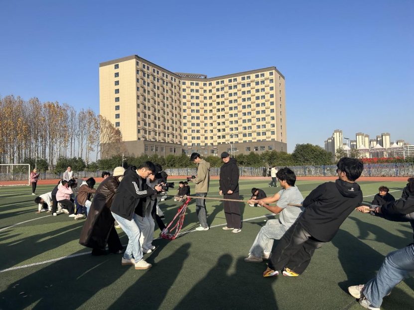 活动前期,承办单位校团委围绕“融情聚力、凝聚人心”的核心目标,进行了周密策划与宣传动员。设计了兼具趣味性、协作性与适度竞技性的八大项目及一个彩蛋环节,包括趣味毛毛虫竞速、两人三足、拔河、极速跳绳、蜈蚣竞走、蒙眼互打、袋鼠跳和一圈到底。项目设置注重降低参与门槛、提升团队互动,确保广大学生都能在轻松愉快的氛围中参与其中。