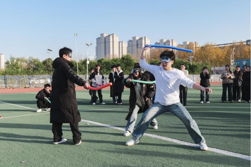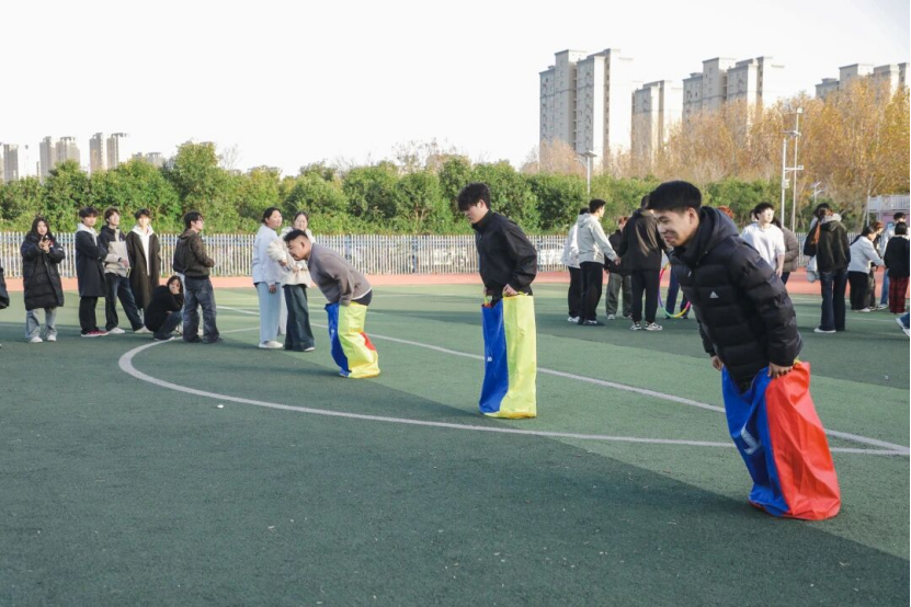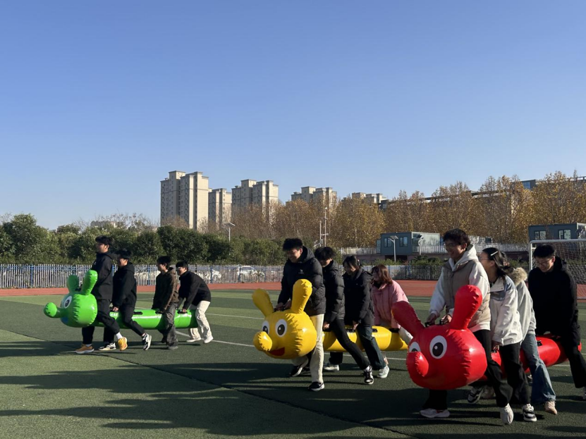 活动前期,承办单位校团委围绕“融情聚力、凝聚人心”的核心目标,进行了周密策划与宣传动员。设计了兼具趣味性、协作性与适度竞技性的八大项目及一个彩蛋环节,包括趣味毛毛虫竞速、两人三足、拔河、极速跳绳、蜈蚣竞走、蒙眼互打、袋鼠跳和一圈到底。项目设置注重降低参与门槛、提升团队互动,确保广大学生都能在轻松愉快的氛围中参与其中。